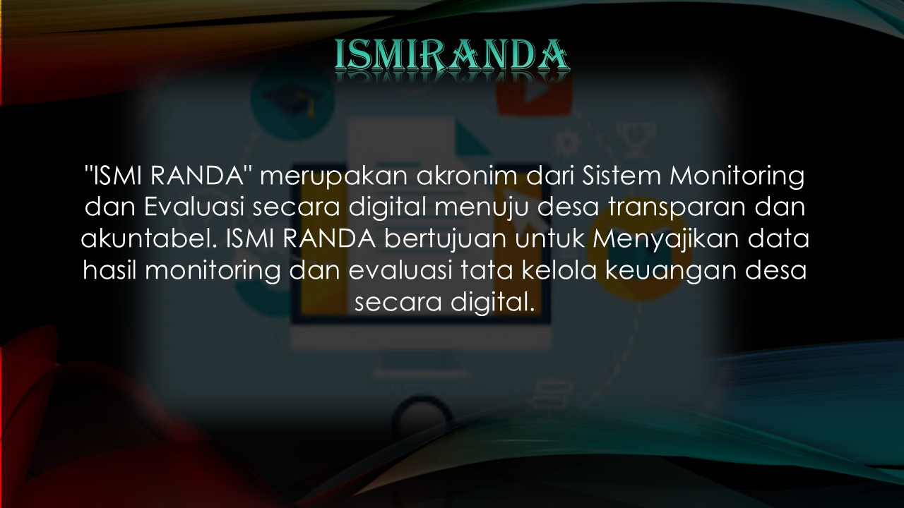 "ISMI RANDA" merupakan akronim dari Sistem Monitoring dan Evaluasi secara digital menuju desa transparan dan akuntabel.