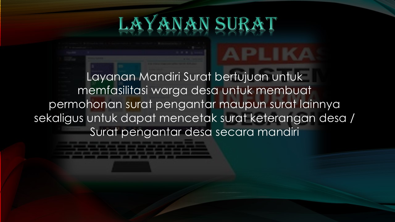 ISMI RANDA bertujuan untuk Menyajikan data hasil monitoring dan evaluasi tata kelola keuangan desa secara digital. - Layanan Mandiri Surat Layanan Mandiri Surat bertujuan untuk memfasilitasi warga desa untuk membuat permohonan dan cetak surat keterangan/pengantar desa secara mandiri.